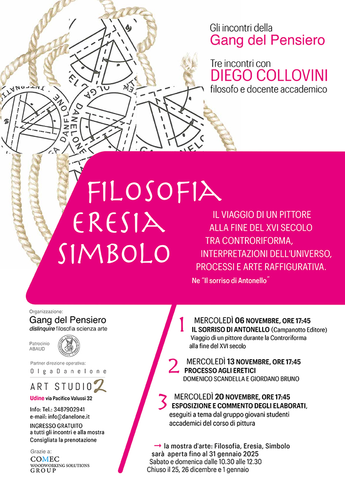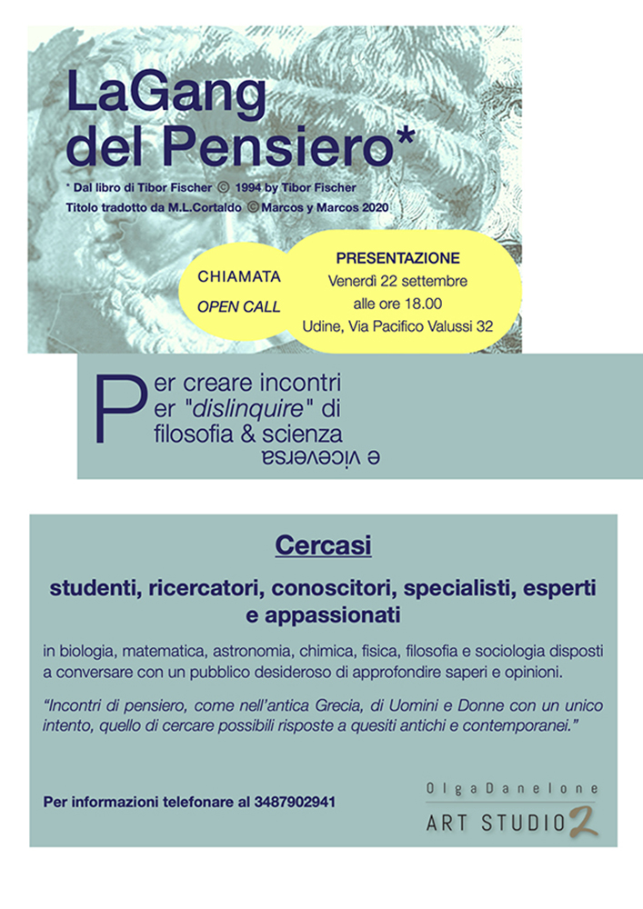 Gang del Pensiero, gruppo di cultura partecipata, dove tutte le persone condividono saperi e opinioni. Lo scopo è di ricevere e condividere saperi e competenze. Ascoltandosi vicendevolmente in maniera costruttiva e leggera,  lasciando scorrere le idee in parole che, rapportate al tepore dolce di una corrente d’aria estiva, rinfrescano e rinnovano il piacere dello scambio reciproco.