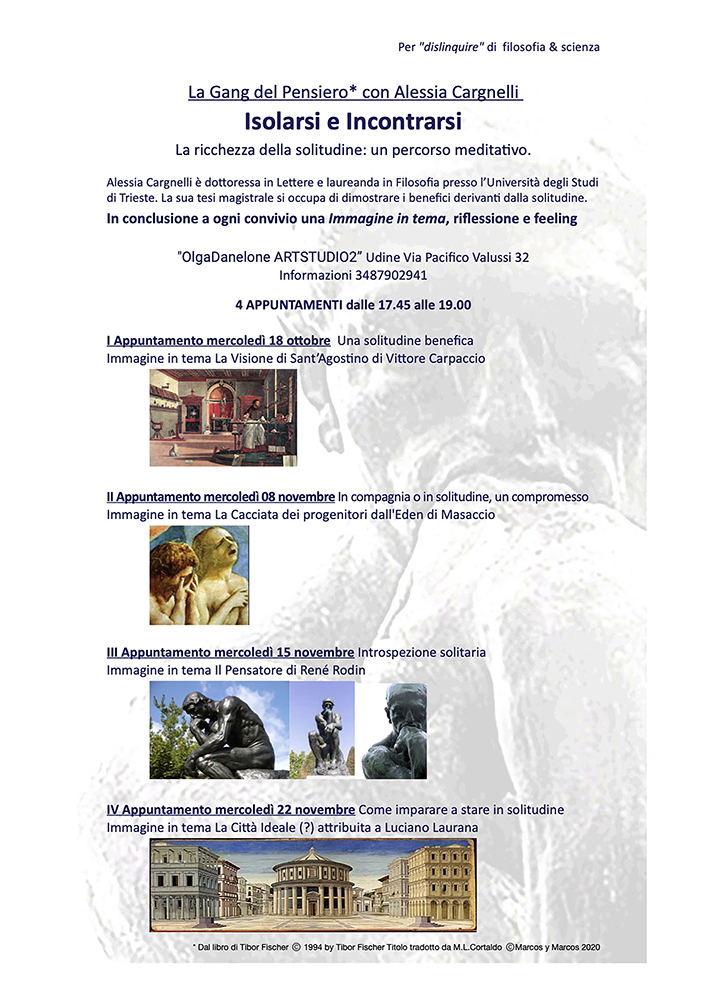 Gli incontri sono iniziati nel 2023- risalgono ad Amaci 2015, quando la Danelone organizzò, per il giorno dell’arte contemporanea in Italia, l’evento Voce del verbo DISLINQUìRE. Un atto ironico, un vocabolo inesistente, ma significativo di un’idea di scambio infinito di opinioni; lei stessa definendo il termine scriveva: «Parlare di cose serie ma con respiro, ascoltare ed essere ascoltati in un conversare costruttivo e leggero»